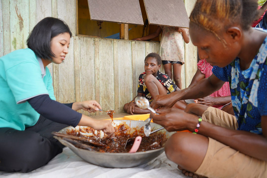 MERAUKE – Sagu dikenal sebagai makanan pokok masyarakat Papua yang lezat, kaya karbohidrat dan mudah ditemukan di mana saja. Sagu biasanya diolah menjadi makanan tradisional seperti papeda dan sagu sep. Namun sagu juga dapat diolah menjadi berbagai olahan makanan tradisional lain, seperti ongol–ongol. Hal inilah yang ingin didemonstrasikan oleh PT Papua Agro Lestari (PAL) kepada masyarakat Kampung Mutimangge, Distrik Ulilin, Kab. Merauke, Papua Selatan pada Sabtu (26/11).