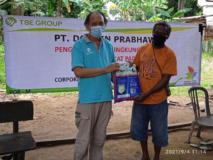 Penyerahan bantuan kelambu nyamuk kepada warga Kampung Nakias oleh manajemen perusahaan DP