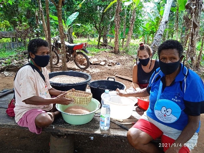 Para ibu Kampung Nakias menyiapkan masakan untuk disantap bersama