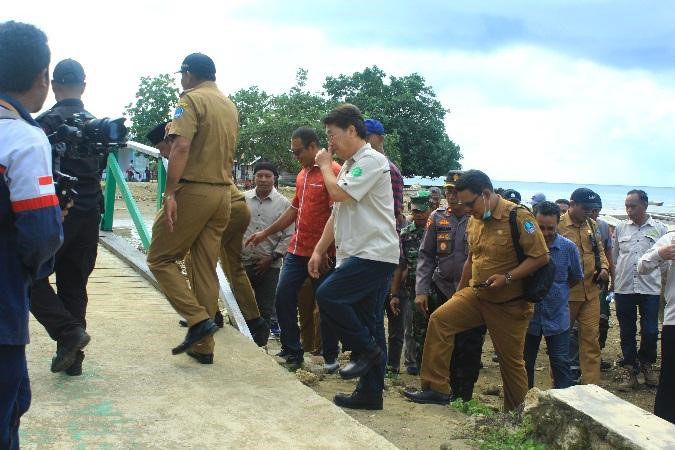 Dalam kegiatan peninjauan ini Hi. Usman Sidik beserta jajaran dinas terkait didampingi oleh Direktur PT Gelora Mandiri Membangun, Yang Hyun Tak. Dalam kesempatan ini Bupati atas nama pemerintah daerah mengucapkan rasa syukur atas rampungnya jembatan ini. “Terima kasih saya ucapkan kepada PT Gelora Mandiri Membangun yang telah menyelesaikan pembangunan jembatan di desa kami, karena selama ini warga dan anak sekolah sangat kesulitan untuk akses menuju ke Pusat Kesehatan Masyarakat (PUSKESMAS) dan Sekolah Menengah Umum (SMU) apabila hujan deras dan air pasang,” ucapnya.