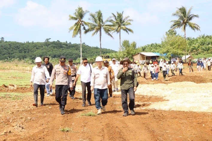 Foto: Karyawan PT GMM, aparat kepolisian, perangkat desa dan masyarakat bergotong-royong melakukan penanaman jagung di Halmahera Selatan sebagai bagian dari upaya memperkuat ketahanan pangan lokal.