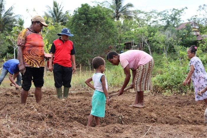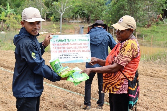 BOVEN DIGOEL – Tunas Sawa Erma (TSE) Group headed down to a vegetable farming site in Naga (Sub)village, Jair District, Boven Digoel Regency on Tuesday (4/11) to help local mothers with their first planting. These moms are members of a farmer group that is active in the region.